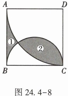 13. (★★)如图24.4 - 8,在边长为2的正方形$ABCD$中,以点$D$为圆心,$AD为半径画\overset{\frown}{AC}$,再以$BC$为直径画半圆,若阴影部分①的面积为$S_1$,阴影部分②的面积为$S_2$,则$S_2 - S_1$的值为【 】