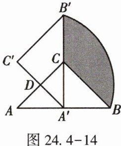 20. (★★)(河南)如图24.4 - 14,在$\triangle ABC$中,$\angle ACB = 90^{\circ}$,$AC = BC = 2$,将$\triangle ABC绕AC的中点D逆时针旋转90^{\circ}得到\triangle A'B'C'$,其中点$B的运动路径为\overset{\frown}{BB'}$,则图中阴影部分的面积为____.