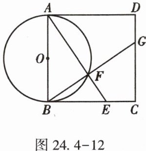 18. (★★)如图24.4 - 12,四边形$ABCD$是正方形,以边$AB为直径作\odot O$,点$E在BC$边上,连接$AE交\odot O于点F$,连接$BF并延长交CD于点G$.