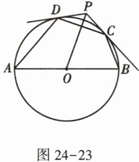 16.(★★)(北京)如图24-23,$AB$ 是$\odot O$ 的直径,过$\odot O$ 外一点 $P$ 作$\odot O$ 的两条切线 $PC$,$PD$,切点分别为 $C$,$D$,连接 $OP$,$CD$.