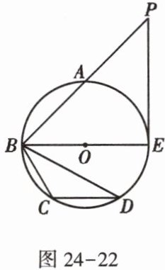 15.(★★)(黄石)如图24-22,已知 $A$,$B$,$C$,$D$,$E$ 是$\odot O$ 上五点,$\odot O$ 的直径 $BE = 2\sqrt{3}$,$\angle BCD = 120^{\circ}$,$A$ 为$\overset{\frown}{BE}$ 的中点,延长 $BA$ 到点 $P$,使 $AP = BA$,连接 $PE$.