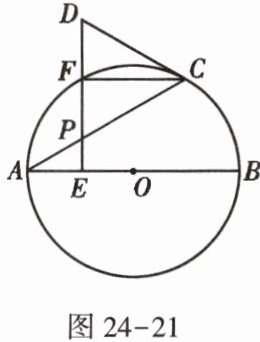 14.(★★)(江西)如图24-21,$AB$ 是$\odot O$ 的直径,点 $P$ 是弦 $AC$ 上一动点(不与 $A$,$C$ 重合),过点 $P$ 作 $PE\bot AB$,垂足为 $E$,射线 $EP$ 交$\overset{\frown}{AC}$ 于点 $F$,交过点 $C$ 的切线于点 $D$.
