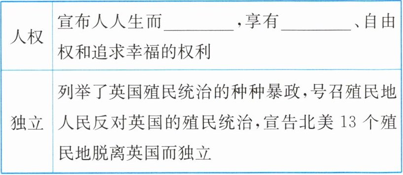 |人权|宣布人人生而______,享有______、自由权和追求幸福的权利|