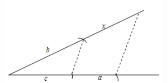 解:由ab=cx得c:a=b:x,作出c、a、b、x的第四比例项得到x,如图: