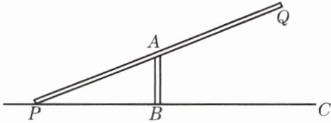 9. 跷跷板 PQ 的直立支柱 AB 的高度为 0.4 米,直线 BC 表示地面.(1)当支点 A 为跷跷板 PQ 的中点时,跷跷板的一端 Q 可达到的最大高度是多少米?(2)平移支柱 AB 的位置,使跷跷板的一端 Q 的最大高度达到 1.0 米,这时支点 A 分 PQ 所成两段中较长一段与较短一段的长度的比值是多少?