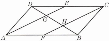 6. 如图,已知平行四边形ABCD中,点E、F分别是边DC、AB的中点,AE、CF与对角线BD分别交于点G、H,设$\overrightarrow{AF}= \overrightarrow{a}$,$\overrightarrow{AD}= \overrightarrow{b}$。