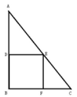7. 如图,△ABC表示一块直角三角形空地,$\angle ABC= 90^\circ$,边AB= 80分米,BC= 60分米。现要在空地内划出一个正方形区域建造水池,这个正方形的四个顶点必须在△ABC的边上。请你在图中画出一个符合要求的正方形,并求这个正方形的面积。再想一想,怎样设计才能使划出的正方形区域的面积最大?