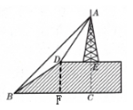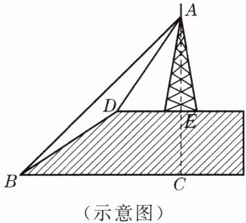 9. 如图,小山的顶部是一块平地,在这块平地上有一高压输电线的铁架.小山斜坡 BD的坡度$i= 1:\sqrt{3}$,坡长为 50 米.在山坡的坡底 B 处测得铁架顶端 A 的仰角为 45°,在山坡的坡顶 D 处测得铁架顶端 A 的仰角为 60°.求铁架的高度 AE(精确到 0.1 米).