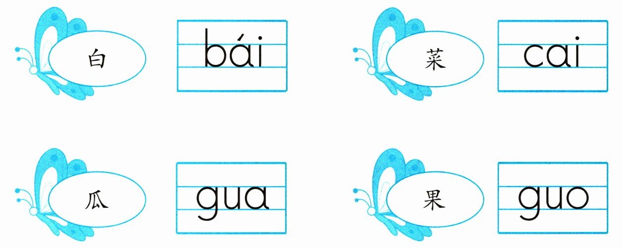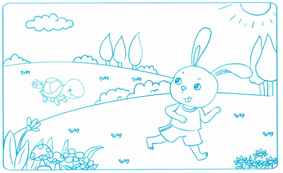 【解析】:本题主要考查了看图说话的能力以及对拼音和汉字的掌握。从图片中可以看到一只白兔和一只乌龟在一条道路上,结合题干中给出的拼音“wū guī(乌龟)”“bái tù(白兔)”“bǐ sài(比赛)”,可以推测出图意是乌龟和白兔在进行比赛。