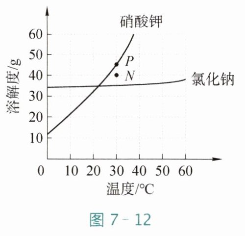 6. 图 7 - 12 是硝酸钾、氯化钠的溶解度曲线。回答下列问题。
