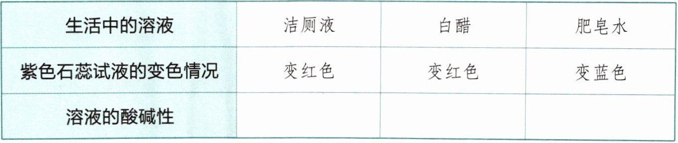 根据下表中溶液滴加紫色石蕊试液后的变色情况,在表中写出这些溶液的酸碱性。