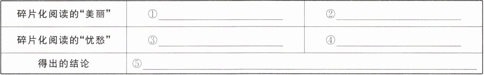 3. (阅读要素)碎片化阅读的“美丽”和“忧愁”具体指什么? 请梳理文本信息,填写下表。