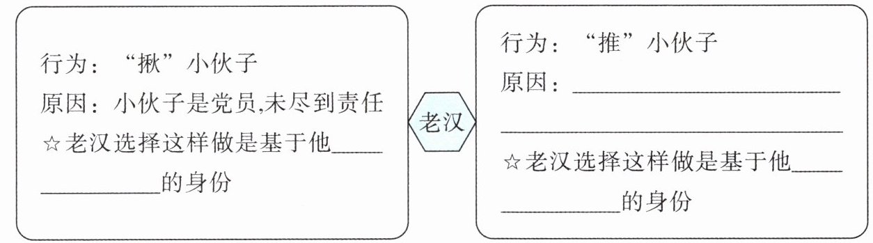 原因:小伙子是党员,未尽到责任│ └──☆老汉选择这样做是基于他________的身份