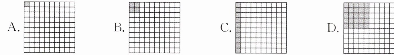 (2) 我们知道,边长是 100 米的正方形的面积是 1 公顷。历史上,“公亩”也曾作为测量土地面积的重要单位,边长为 10 米的正方形的面积是 1 公亩。图中大正方形的面积表示 1 公顷,那么阴影部分表示 1 公亩的是图(