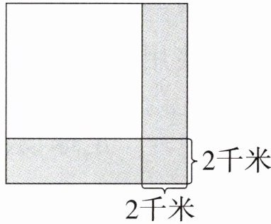 6. 如图,一块正方形土地的边长增加 2 千米后,面积增加了 3600 公顷(涂色部分)。这块土地原来的面积是多少平方千米?合多少公顷?