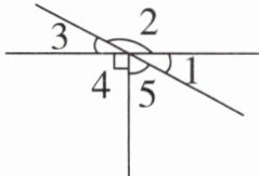 3. 如图,已知∠1= 28°,求∠2、∠3、∠5的度数。
