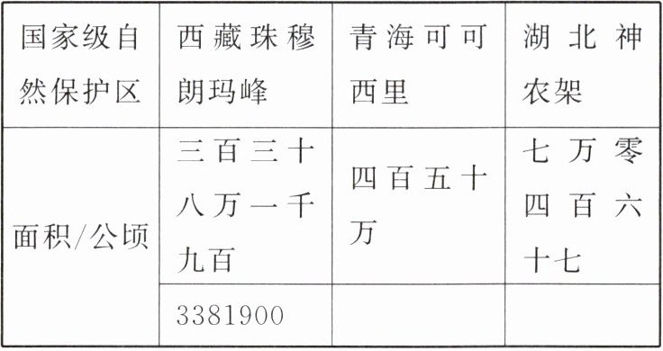 2 我国三个国家级自然保护区的面积如下表,请将下表填完整。(公顷是一种面积单位)