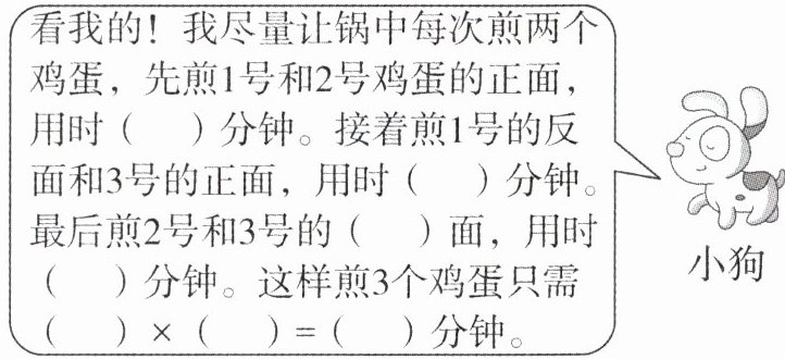 )的方法既充分利用了锅面的空间,又最节省时间也最合理。所以煎3个鸡蛋,至少要(6