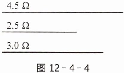 有三根铅笔芯,其电阻阻值如图12-4-4所示。能否通过这三根铅笔芯中选择任意两根组合得到阻值为1.8Ω的等效电阻?