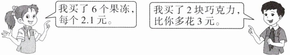 4. 小美和小刚去超市购物。算一算,每块巧克力多少元?