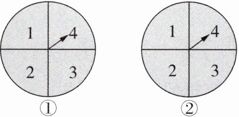 3 小明与小冬玩转盘游戏,设计了两个完全相同的转盘(如图),每个转盘被分成面积相等的四个区域,分别用数字 1、2、3、4 表示。固定指针,同时转动两个转盘,任其自由停止,若两个指针所指数字之积为单数,则小明获胜;若两个指针所指数字之积为双数,则小冬获胜;若指针指向分界线,则重新转动转盘。这个游戏公平吗?如果不公平,那么谁获胜的可能性大?