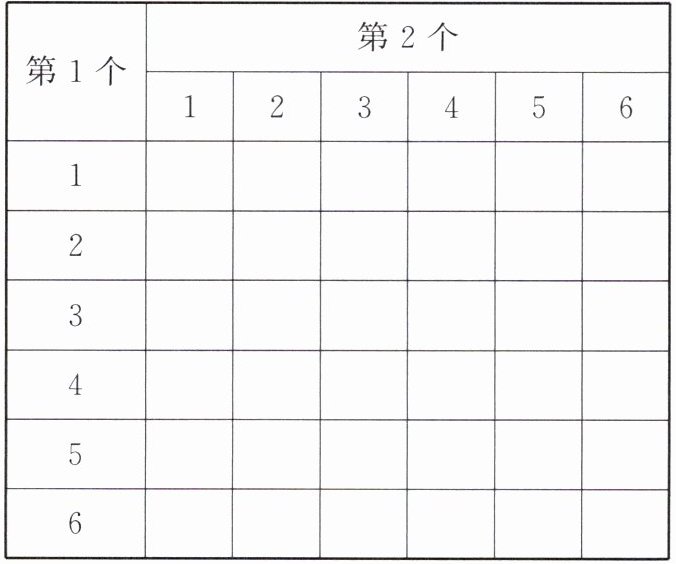 2 同时掷六个面上分别标有 1~6 六个数字的两个骰子,得到两个数,将这两个数的和填在表格中。