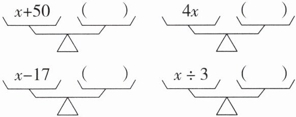 4 已知 $ x = 30 $,在下面的括号里填上合适的数,使每个天平都平衡。