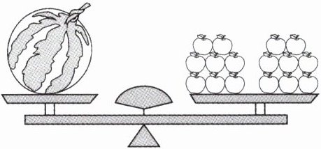 5 (1)如图,如果左盘中再放上1个西瓜和8个苹果,那么右盘中要放上(