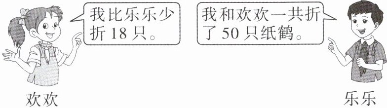 解:设乐乐折了x只纸鹤,则欢欢折了(x-18)只纸鹤。
