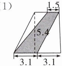 (1)$(1.5+3.1)× 5.4÷ 2=12.42(cm^2)$