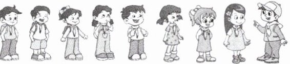 这里有( )个小朋友站队,他们之间有( )个间隔。