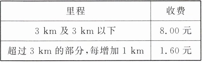 3 某市出租车的收费标准如表中所示,刘明家到外婆家的里程为8km,他从家出发乘出租车去外婆家需付车费多少钱?