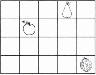 3. 如图,若苹果的位置是$(2,3)$,则梨的位置可以表示为( , ),西瓜的位置可以表示为( , )。