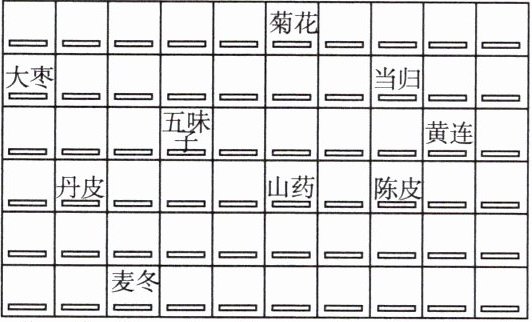 (1)丹皮 黄连 菊花 大枣 (2)(8,e) (3,a) (3)表示数对的行数、列数还可以是字母等其他符号。(答案不唯一,合理即可)