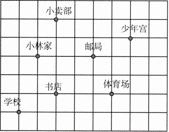 (3)小林从书店出发向北走300m,再向东走300m就能到达公园,公园的位置是( , )。(1分)