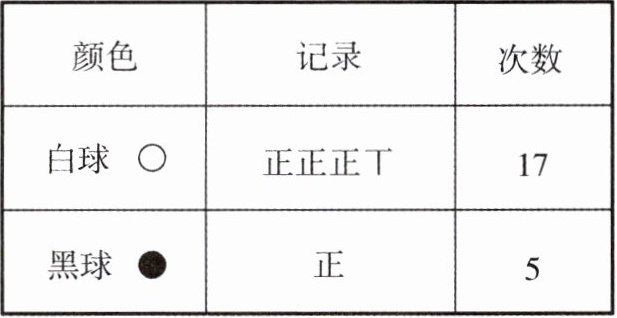 5. 小明从盒子里摸乒乓球,一共摸了22次(摸出一个球后再放回盒子里),摸出的结果如下表: