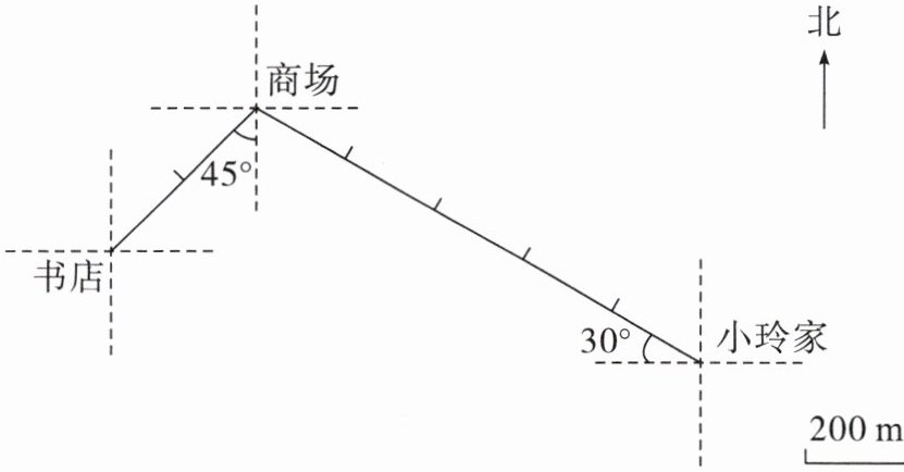)。A.从小玲家向西偏北$30^{\circ}$方向走$800\ m$到商场