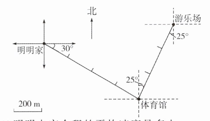 (1)(答案不唯一)东偏南 30° 800 m 北偏东 25° 600 m 南偏西 25° 600 m 西偏北 30° 800 m 2800 m 40 分钟
