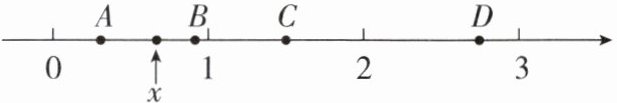 (3)$x$表示的数在直线上的位置如图,则$\dfrac{1}{x}$表示的数的位置大约在(
