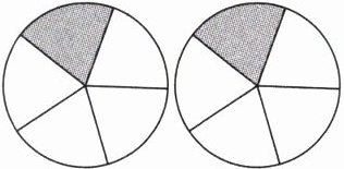 方法一:如图,每升牛奶用 1 个圆表示,则$\frac{1}{5}$L 用$\frac{(\ \ \ \ \ \ )}{(\ \ \ \ \ \ )}$个圆表示,一个圆平均分成 5 份,即 1 L 牛奶可以倒满( )杯,2 L 牛奶可以倒满( )×2 =( )(杯)。