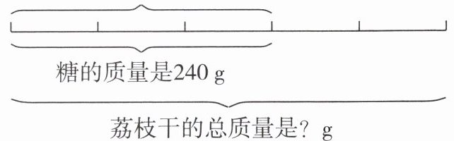 (3)$240÷ \frac{3}{5}=400(g)$ 荔枝干 $\frac{3}{5}x=240$