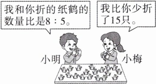 $15÷(8-5)=5$(只) 小明:$5×8=40$(只) 小梅:$5×5=25$(只)