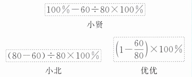 )。小贤:$100\%-60÷80×100\%$