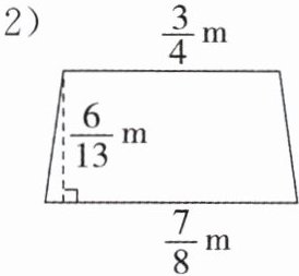 4.(1)$\frac{9}{4} × \frac{4}{3} × \frac{1}{2} = \frac{3}{2}(m^2)$ (2)$(\frac{3}{4} + \frac{7}{8}) × \frac{6}{13} × \frac{1}{2} = \frac{3}{8}(m^2)$