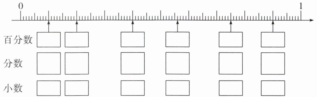 (3) 分别用百分数、分数、小数表示直线上的各点。