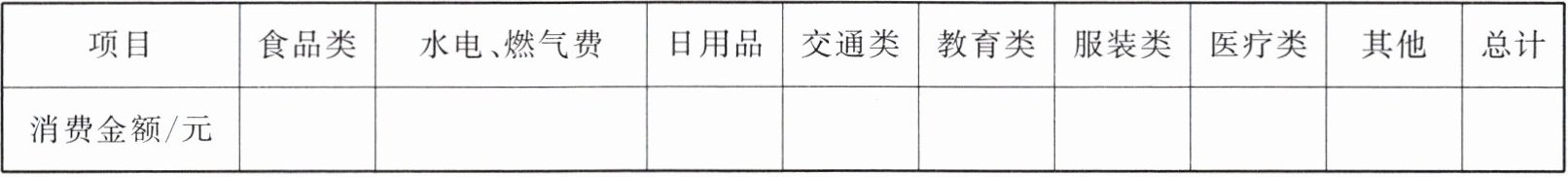 【整理数据】调查自己家今年 11 月的支出情况,完成下面的表格,没有的就填 0。