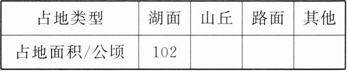 (5)如果生态公园中湖面占地面积为102公顷,请填写下表。
