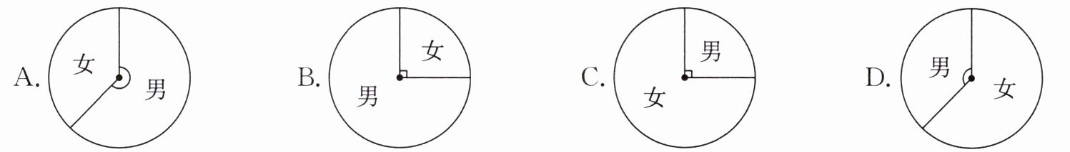 2. 学校合唱队中男生占 25%。下列扇形统计图中,可以正确表示出这条信息的是(