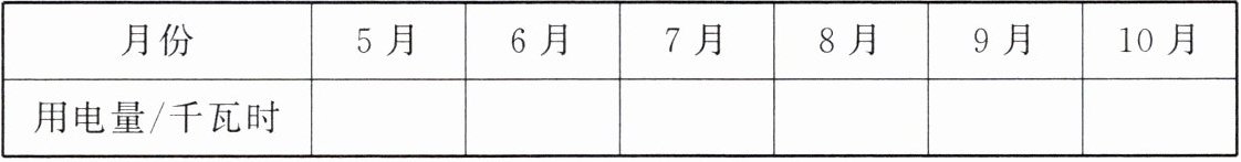 请父母帮助查询本年度 5~10 月的用电量,并将这 6 个月的用电量填写在表格中。