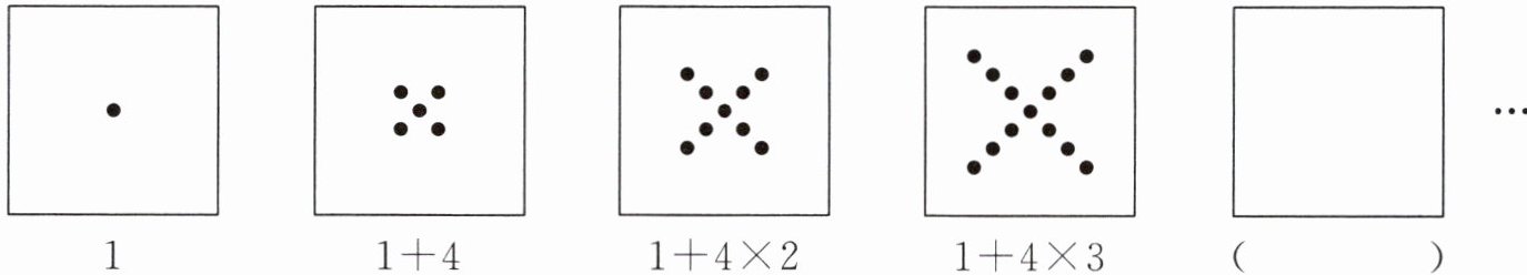 4. 先画出第五个图形,并填空。再想一想,后面第 10 个方框里有(